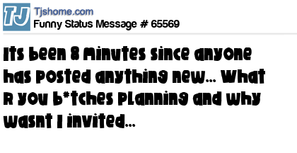 X is Its been 8 minutes since anyone has posted anything new... What r you b*tches planning and why wasnt I invited...