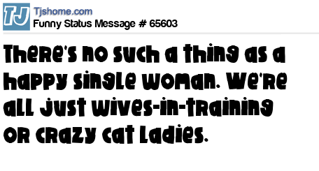 X is There's no such a thing as a happy single woman. We're all just wives-in-training or crazy cat ladies.