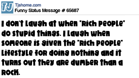 X says I don't laugh at when "rich people" do stupid things. I laugh when someone is given the "rich people" lifestyle for doing nothing and it turns out they are dumber than a rock.