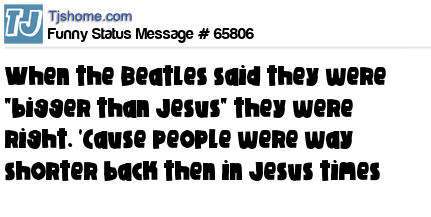 X says When the Beatles said they were "bigger than Jesus" they were right. 'Cause people were way shorter back then in Jesus times