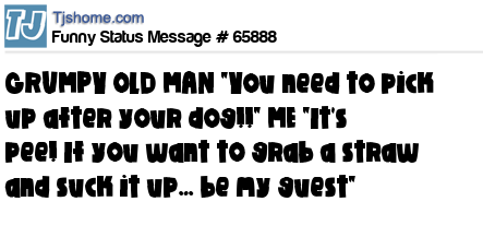- # 32094 Grumpy old man: "You need to pick up after your dog." Me: "It's pee! If you want to grab a straw and suck it up, be my guest."