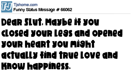 X says Dear Slut, Maybe if you closed your legs and opened your heart you might actually find true love and know happiness.