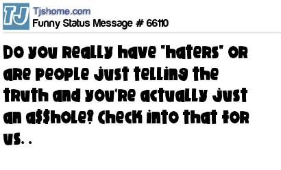 X is Do you really have "haters" or are people just telling the truth and you're actually just an a$$hole? Check into that for us. .