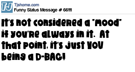 X is It's not considered a "mood" if you're always in it. At that point, it's just YOU being a D-BAG!