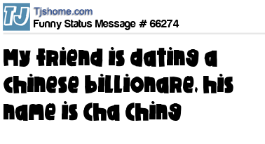 X my friend is dating a chinese billionare, his name is Cha Ching