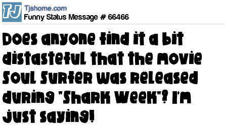 X does anyone find it a bit distasteful that the movie Soul Surfer was released during "Shark Week"? I'm just saying!