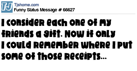 - # 176528 I consider each one of my friends a gift. Now if only I could remember where I put some of those receipts…