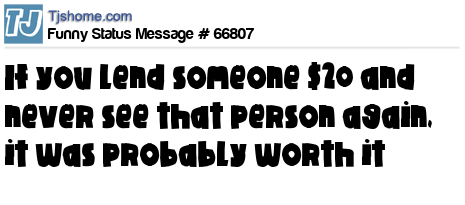 - # 11858 If you lend someone $20, and never see that person again; it was probably worth it.