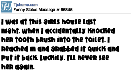 X is I was at this girls house last night, when I accidentally knocked her tooth brush into the toilet. I reached in and grabbed it quick and put it back. Luckily. I'll never see her again.