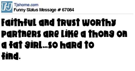 X says Faithful and trust worthy partners are like a thong on a fat girl…so hard to find.