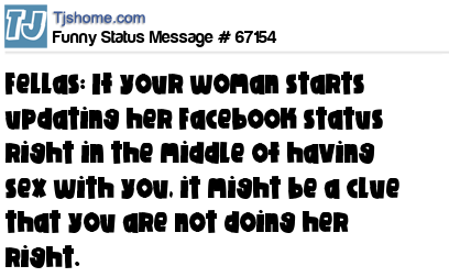 X says Fellas: If your woman starts updating her Facebook status right in the middle of having sex with you, it might be a clue that you are not doing her right.