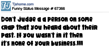 - # 67352 Ladies; don't judge a man on some sh*t that you heard about his past. If you wasn't in it then it's none of your business.