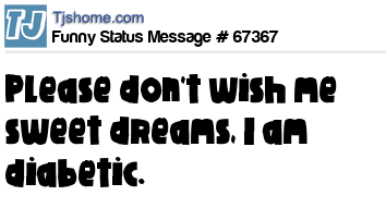 - # 198571 My female doctor told me I'm really sweet. Well, she actually said I am severely diabetic but I knew what she meant.