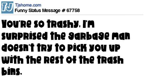 X says You're so trashy, I'm surprised the garbage man doesn't try to pick you up with the rest of the trash bins.