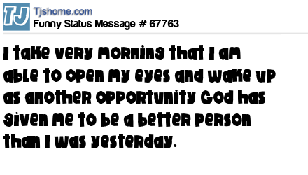 X says I take very morning that I am able to open my eyes and wake up as another opportunity God has given me to be a better person than I was yesterday.
