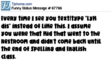 X Every time I see you text/type "lyk dis" instead of like this, I assume you were that kid that went to the restroom and didn't come back until the end of Spelling and English class.