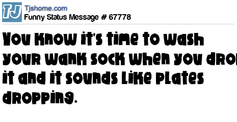 X is You know it's time to wash your wank sock when you drop it and it sounds like plates dropping.