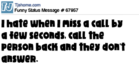 - # 9537 don't you hate it when you miss a call by the last ring, but when you immediately call back, it rings nine times and goes to voicemail? What did the person do after I didn't answer? Drop the phone and run away?