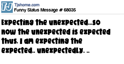 X is expecting the unexpected...so now the unexpected is expected thus, I am expecting the expected.. unexpectedly. ..