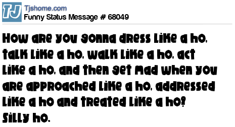 X says How are you gonna dress like a ho, talk like a ho, walk like a ho, act like a ho, and then get mad when you are approached like a ho, addressed like a ho and treated like a ho? Silly ho.