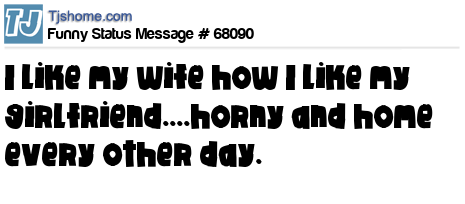 X I like my wife how I like my girlfriend....horny and home every other day.