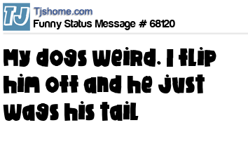 - # 65363 I test my jokes on my dog, if he wags his tail - they make the cut.