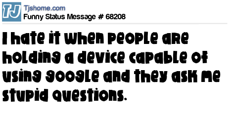 X I hate it when people are holding a device capable of using google and they ask me stupid questions.