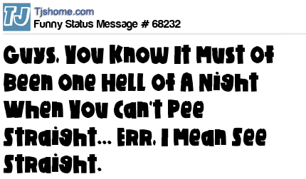 X is Guys, You Know It Must Of Been One Hell Of A Night When You Can't Pee Straight... Err, I Mean See Straight.