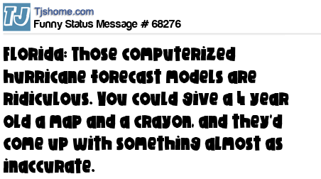 X Florida: Those computerized hurricane forecast models are ridiculous. You could give a 4 year old a map and a crayon, and they'd come up with something almost as inaccurate.