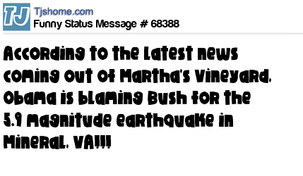 - # 68393 Breaking News: President Obama has just confirmed that the DC earthquake occurred on a rare and obscure fault-line, apparently known as "Bush's Fault".