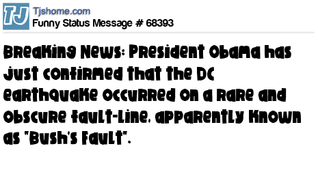 X Breaking News: President Obama has just confirmed that the DC earthquake occurred on a rare and obscure fault-line, apparently known as "Bush's Fault".
