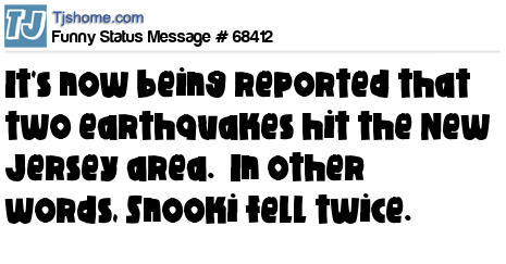 X is It's now being reported that two earthquakes hit the New Jersey area. In other words, Snooki fell twice.