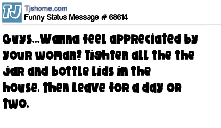 X Guys...Wanna feel appreciated by your woman? Tighten all the the jar and bottle lids in the house, then leave for a day or two.