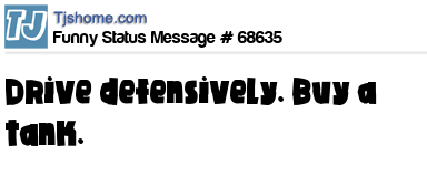 - # 78321 People would probably piss me off a lot less if I was allowed to drive a tank.