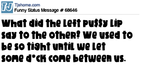 X says What did the left pu$$y lip say to the other? We used to be so tight until we let some d*ck come between us.