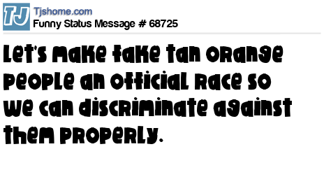 X Let's make fake tan orange people an official race so we can discriminate against them properly.