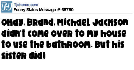 X Okay, Brand, Michael Jackson didn't come over to my house to use the bathroom. But his sister did!