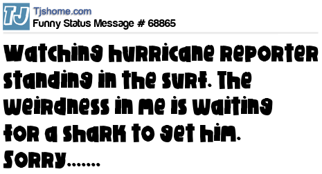 X Watching hurricane reporter standing in the surf. The weirdness in me is waiting for a shark to get him. Sorry.......