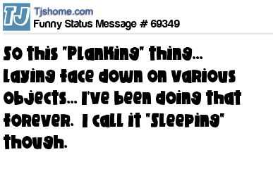 X So this "Planking" thing... laying face down on various objects... I've been doing that forever. I call it "Sleeping" though.