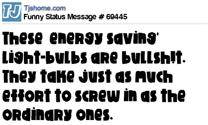 - # 78635 These ‘energy saving' light-bulbs are rubbish. They take just as much effort to screw in as the ordinary ones.