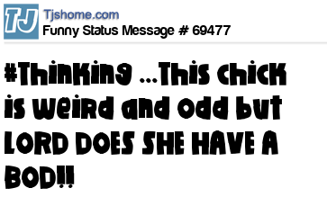 X is #Thinking ...This chick is weird and odd but LORD DOES SHE HAVE A BOD!!