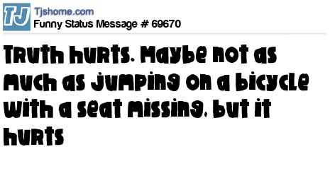 - # 31419 I guess the truth really does hurt. Maybe not as much as jumping on a bicycle when the seat's missing, but it hurts.