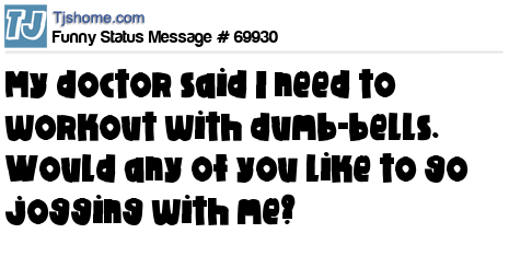 X My doctor said I need to workout with dumb-bells. Would any of you like to go jogging with me?