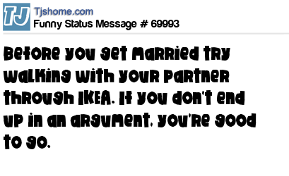 X says Before you get married try walking with your partner through IKEA. If you don't end up in an argument, you're good to go.
