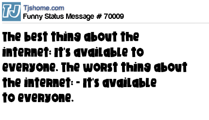 - # 105460 The Best thing about the internet: It's available to everyone. The Worst thing about the internet: It's available to everyone.