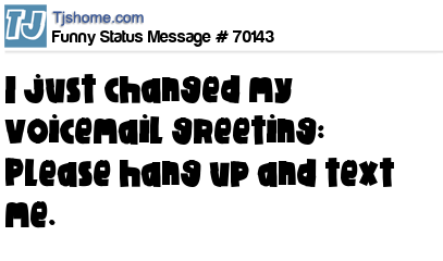 - # 78618 I'm thinking of changing my voicemail to the following: "If you have reached this recording, please hang up and text me."
