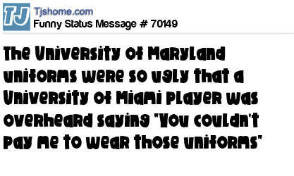 - # 70092 The University of Maryland uniforms were so ugly.....How ugly are they???So ugly that a University of Miami player was overheard saying "You couldn't pay me to wear those uniforms"