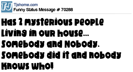 X has 2 mysterious people living in our house... Somebody and Nobody. Somebody did it and nobody knows who!