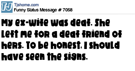 X My ex-wife was deaf. She left me for a deaf friend of hers. To be honest, I should have seen the signs.