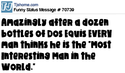 - # 67061 After 10 Dos Equis beers, I think I'm the most interesting man in the world.
